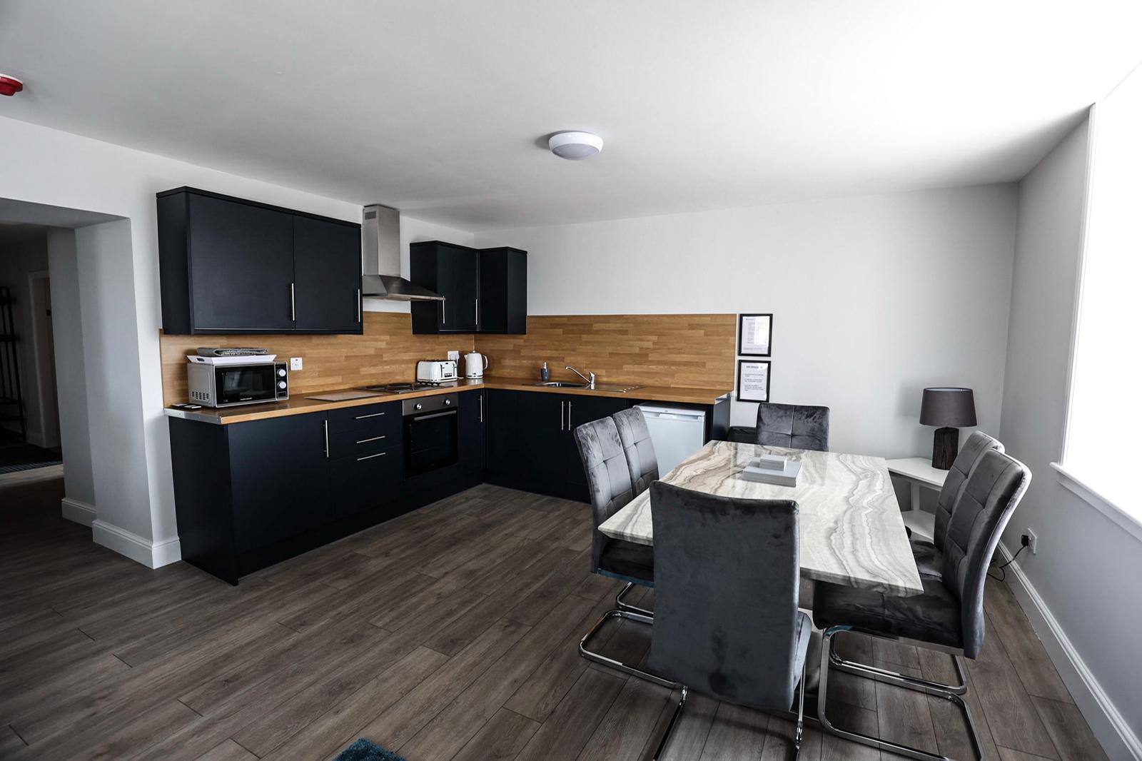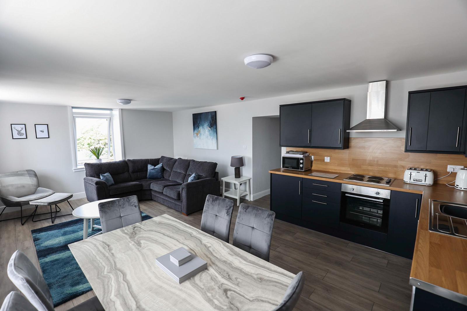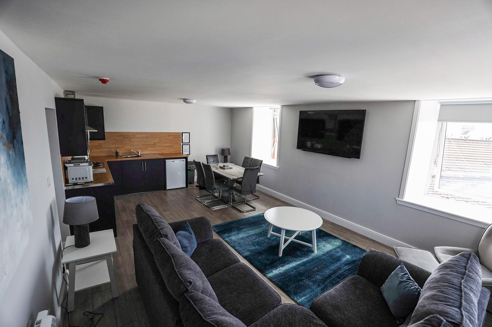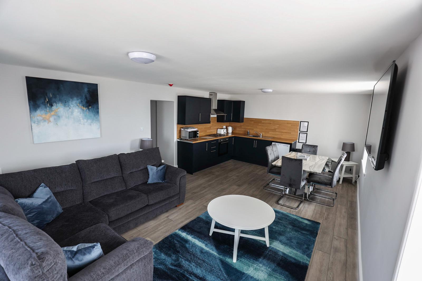 - Open plan lounge, kitchenette and dining area
